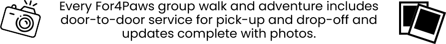 Every For4Paws group walk and adventure includes door-to-door service for pick-up and drop-off and updates complete with photos.